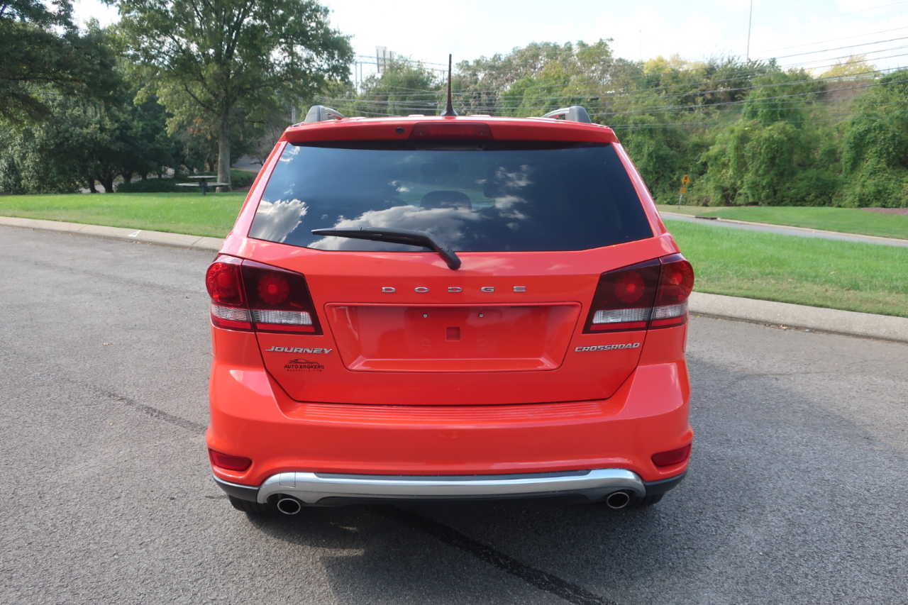 One Local Owner, Rear Entertainment - 2018 Dodge Journey Crossroad - Blood Orange with Black Partial Leather, V6, 2nd row child booster seats, Factory rear entertainment with 9'' screen, 3rd row seating, 19'' aluminum wheels, Premium sound with 368 watt amp, Alpine speakers and subwoofer, 3 Zone climate control, Power driver`s seat, Tilt/telescopic steering column, Bluetooth, Satellite radio. All new brake pads. We do not charge dealer fees so only additions to price are tax and tags. We are a family owned dealership that has been at our Berry Hill location for 25 years, south of Downtown Nashville and a few minutes from 100 Oaks Mall. (615) 460-7600 Office, (615) 456-8700 Paul, (615) 476-0572 Peter Auto Brokers 636 West Iris Drive Nashville TN 37204