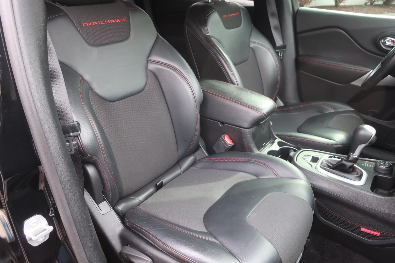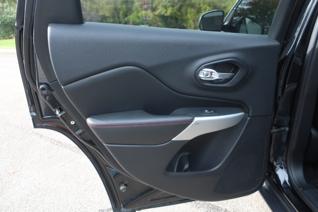 2017 Jeep Cherokee Trailhawk 4x4 - Southern Jeep with a clean Carfax report and service history. Trail Rated. Diamond Black Crystal Clear Coat with Black Partial Leather. 3.2L V6 24-Valve VVT, Seles-Terrain System, Active Drive Lock with locking rear differential, Selec-Speed Crawl Control lets you maintain a set speed in 4WD Low, Hill start assist and Hill descent control, Bi-Xenon HID headlamps, All speed traction control, U-Connect Access, 8.4''touchscreen, Backup camera, Sirius XM, Navigation capable(dealer activation required), Voice activated Bluetooth, Leather wrapped steering wheel and shift handle, Front passenger seat folds flat and also has bottom cushion storage, All weather floor mats, Automatic headlights, LED daytime running headlights, LED tail lights, Dual exhaust, Red tow hooks. New tires, front brake pads and fresh oil change. We do not charge dealer fees so only additions to price are tax and tag. Trades are welcome. We are family owned and have been at our Berry Hill location for 25 years, south of Downtown Nashville and a few minutes from 100 Oaks Mall. (615) 460-7600 Office, (615) 456-8700 Paul, (615) 476-0572 Peter